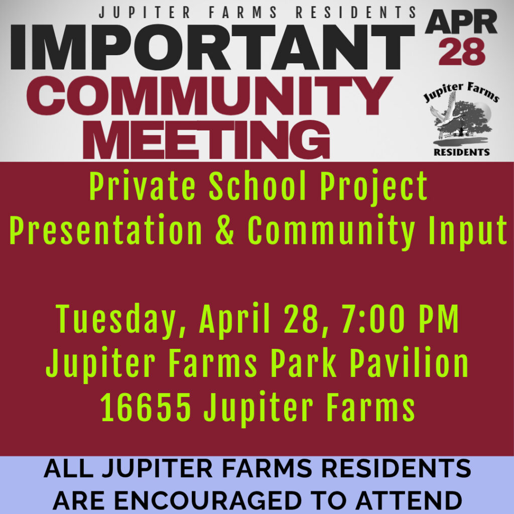 It will be held live/in-person at the Jupiter Farms Park Pavilion
